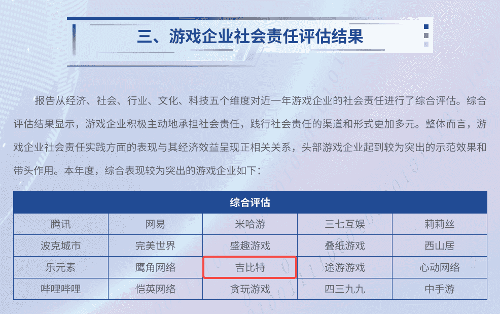 7月3日,,,由中国音像与数字出版协会指导,,,,北京市西城区人民政府主办的“2024游戏责任论坛”在北京举行。。。。论坛上,,,,人民网舆情数据中心、、人民灵境研究院、、、灵境 · 游戏实验室联合发布了《2023-2024游戏企业社会责任报告》(以下简称“《报告》”),,,公布了游戏企业社会责任评估结果。。。厦门918.com网络技术股份有限公司(以下简称“918.com”或“公司”)获评“2023-2024年度中国游戏企业社会责任综合表现较为突出企业”。。这是继2020年以来,,,918.com第五次入围人民网中国游戏企业社会责任相关荣誉榜单。。