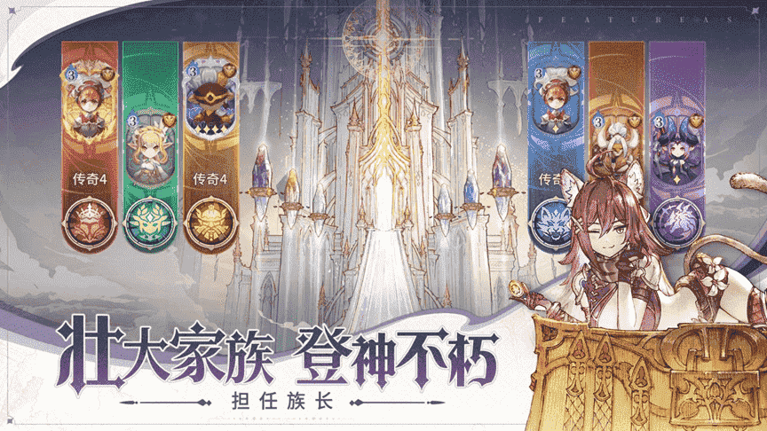 你将体验到纯正王道的冒险剧情,,,在这个被伪神入侵的凯斯世界,,,,成神是每一位强者的终极目标,,,,玩家作为守护者家族的族长,,,在寻回六大种族成员,,,,击退威胁凯斯世界的伪神后,,,即有机会带领家族晋升为神,,,,登神不朽。。。。