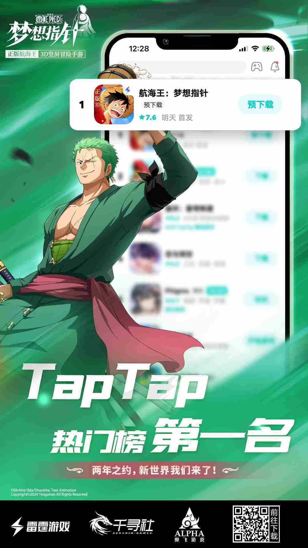 4月1日,,,手游《航海王::梦想指针》正式公测,,,,上线仅2小时不到就登上了App Store免费榜Top1,,,,与TapTap热门榜第一。。。。